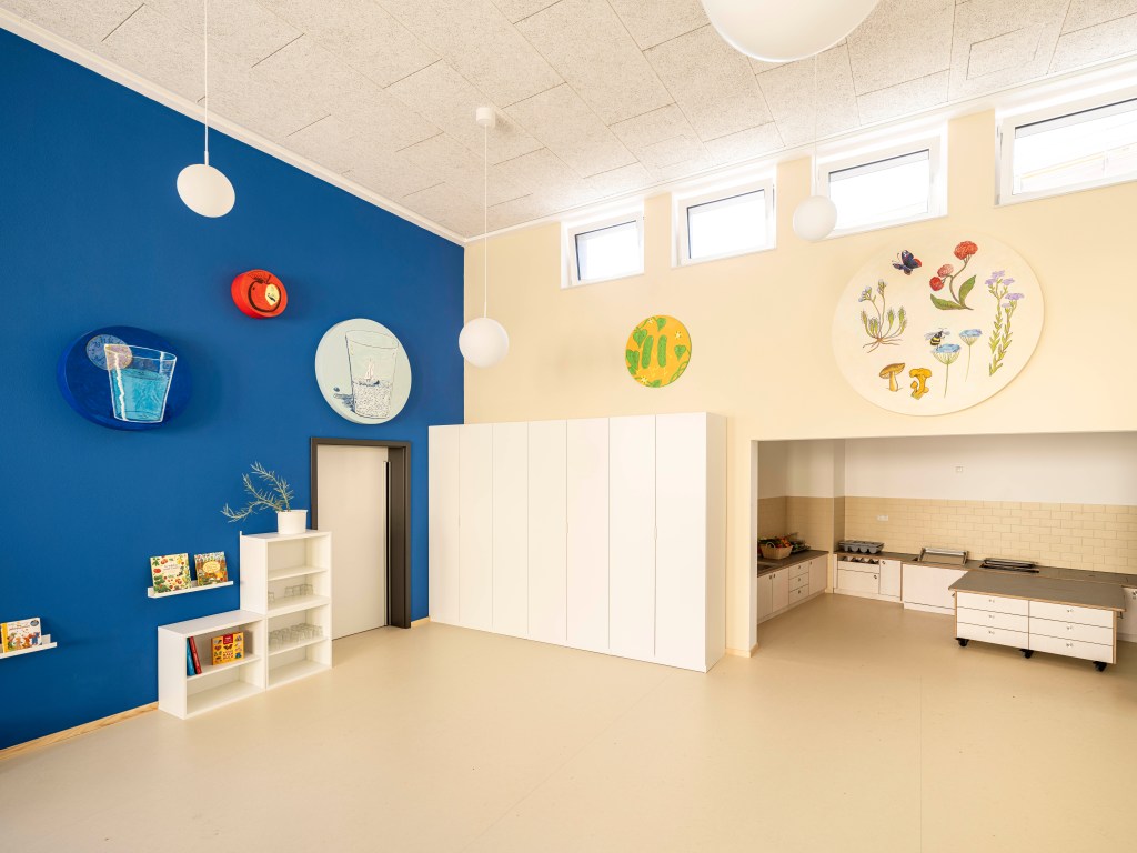 Conception and realisation of a ceiling and wall design for a multipurpose room in a